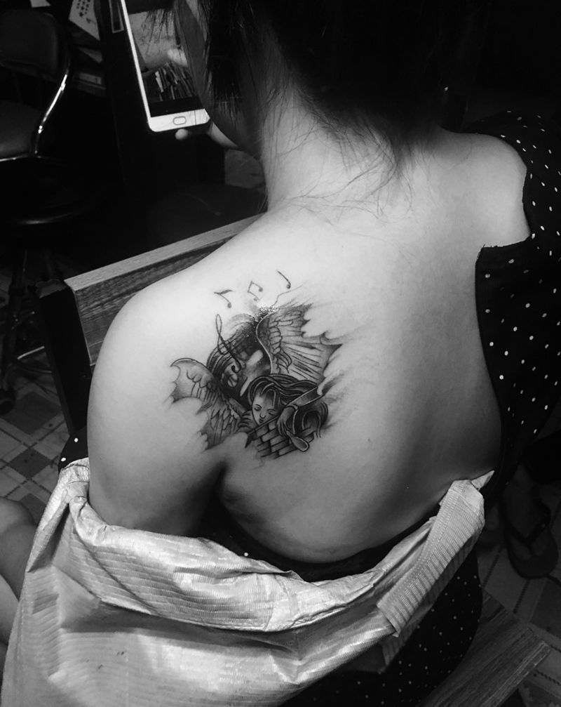 • 纹身吧推荐的披肩图腾半胛纹身图案作品展示