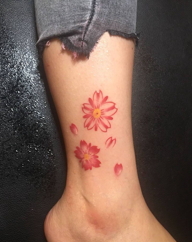 当前位置: 首页 >广东省揭阳市纹身店-揭阳尊贵堂纹身会所纹身图案>花纹身图片_清新成品脚部植物纹身图案