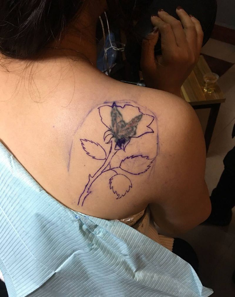 • 女性大花胸纹身_43张霸气漂亮的女性大花胸纹身图案作品