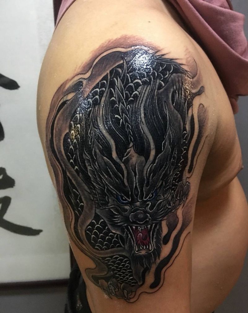 • 纹身吧推荐的披肩图腾半胛纹身图案作品展示