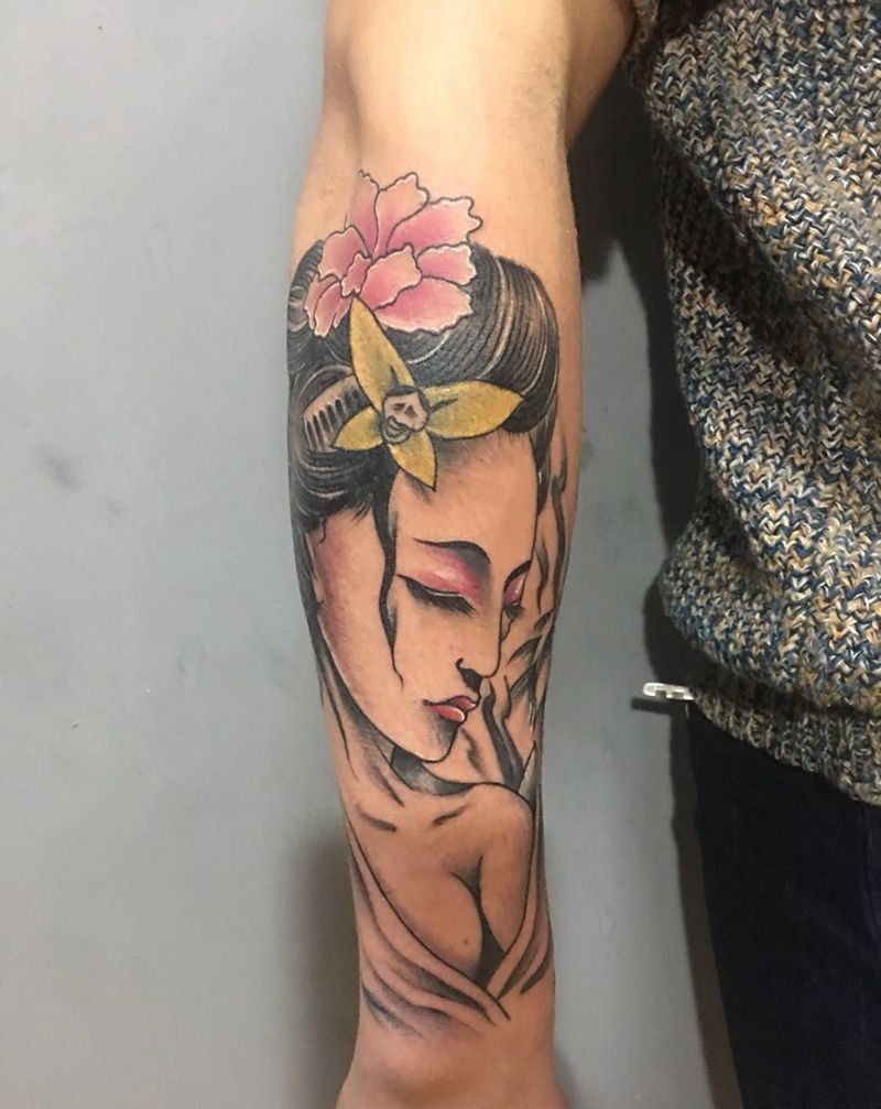 当前位置: 首页 >广东省揭阳市纹身店-揭阳尊贵堂纹身会所纹身图案>艺妓纹身图片