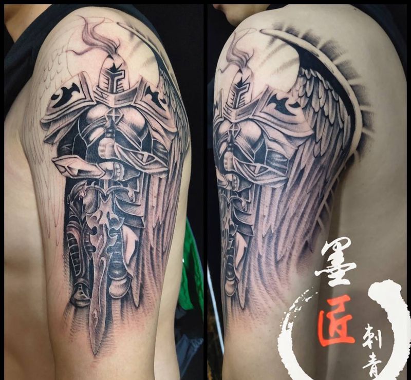 • 纹身吧推荐的披肩图腾半胛纹身图案作品展示