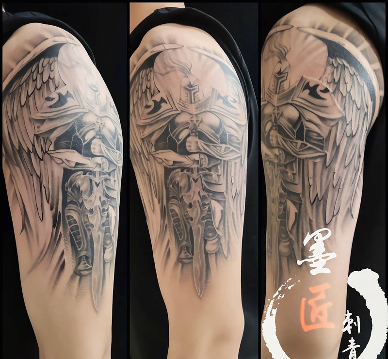 当前位置: 首页 >广西南宁市纹身店-墨匠刺青纹身图案>天使纹身图片_手臂新传统欧美写实纹身图案