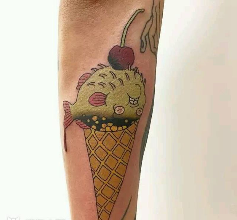 • T包小腿吹火男+阿多福纹身图片_腿部老传统新传统吹火男阿