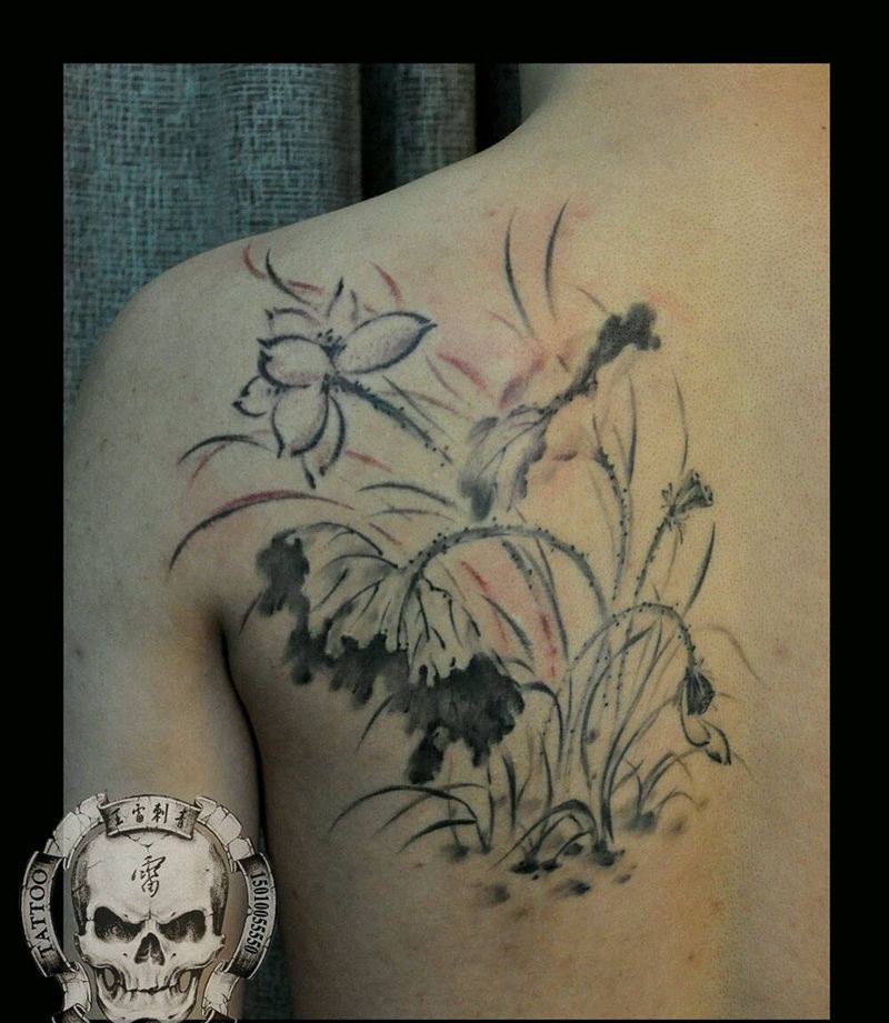 一组15张莲花纹身手