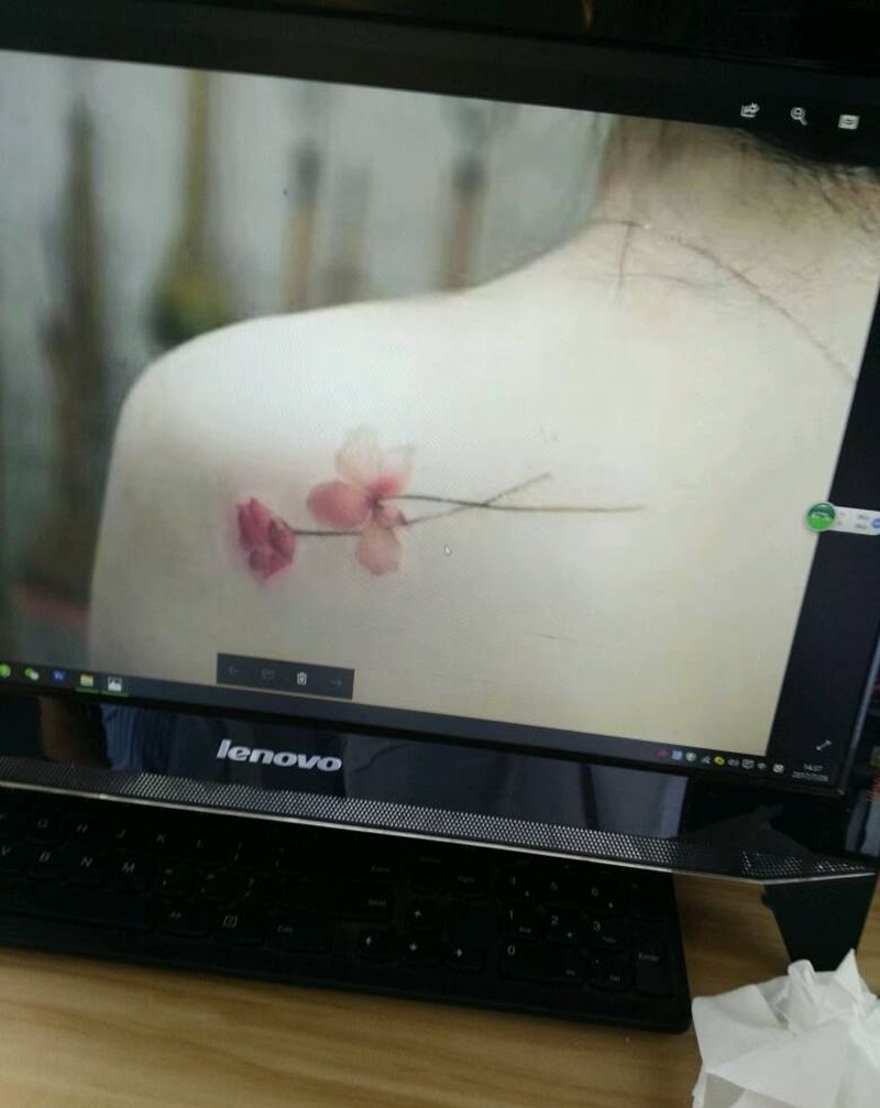 当前位置: 首页 >广西南宁市纹身店-墨匠刺青纹身图案>木棉花纹身图片_肩部传统植物成品纹身图案