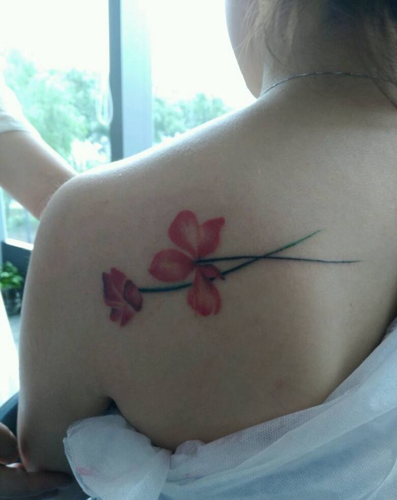 当前位置: 首页 >广西南宁市纹身店-墨匠刺青纹身图案>木棉花纹身图片_肩部传统植物成品纹身图案