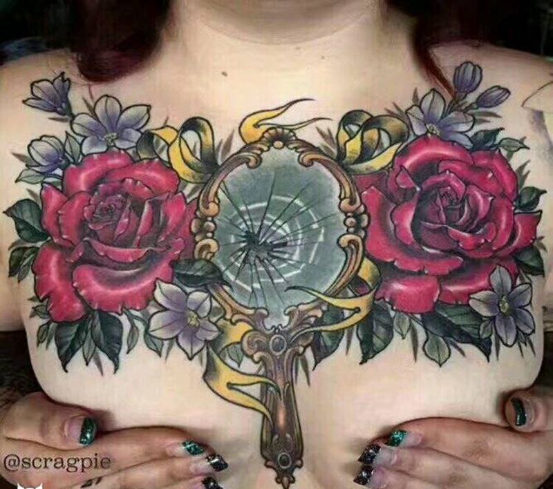 • 女性大花胸纹身_43张霸气漂亮的女性大花胸纹身图案作品