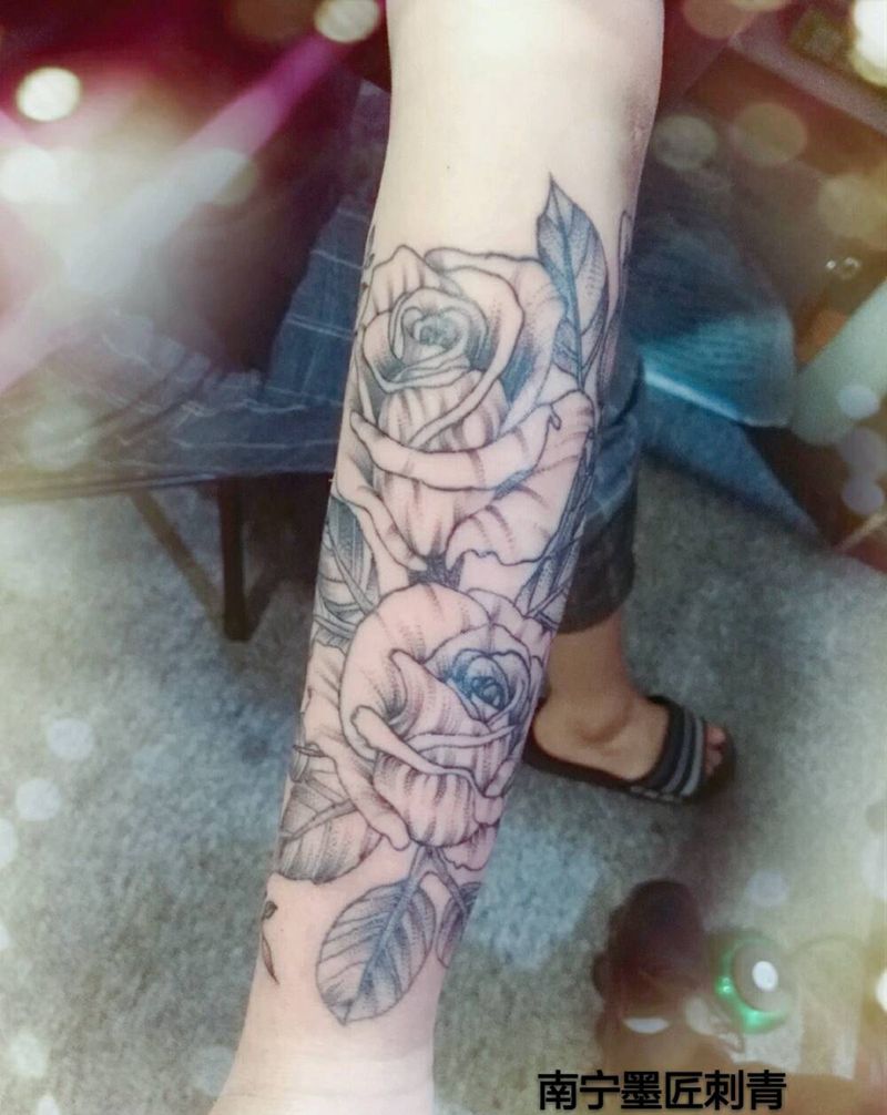 当前位置: 首页 >广西南宁市纹身店-墨匠刺青纹身图案>素花包小臂纹身图片