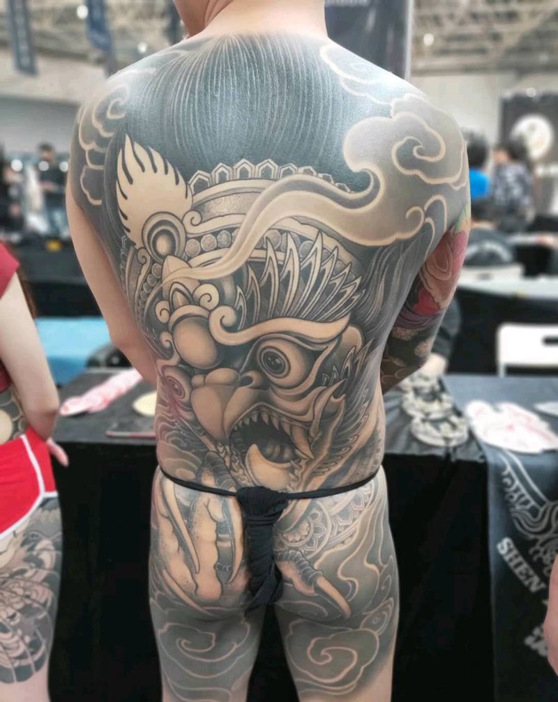 当前位置: 首页 >广西南宁市纹身店-墨匠刺青纹身图案>廊坊纹身展学习的榜样纹身图片_背部腰部新传统老传统纹身图案