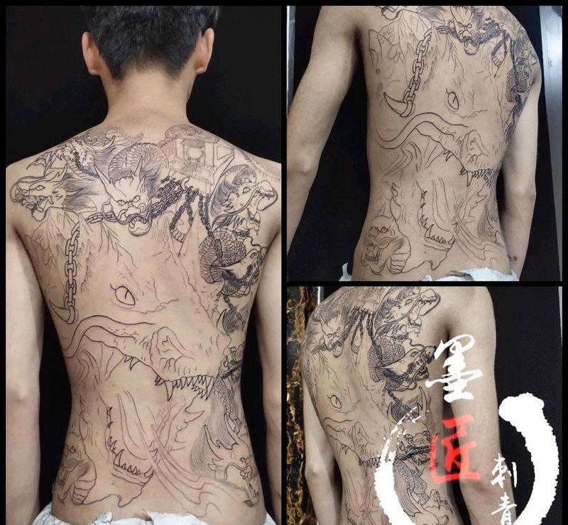 当前位置: 首页 >广西南宁市纹身店-墨匠刺青纹身图案>九龙拉棺纹身图片_背部新传统纹身图案