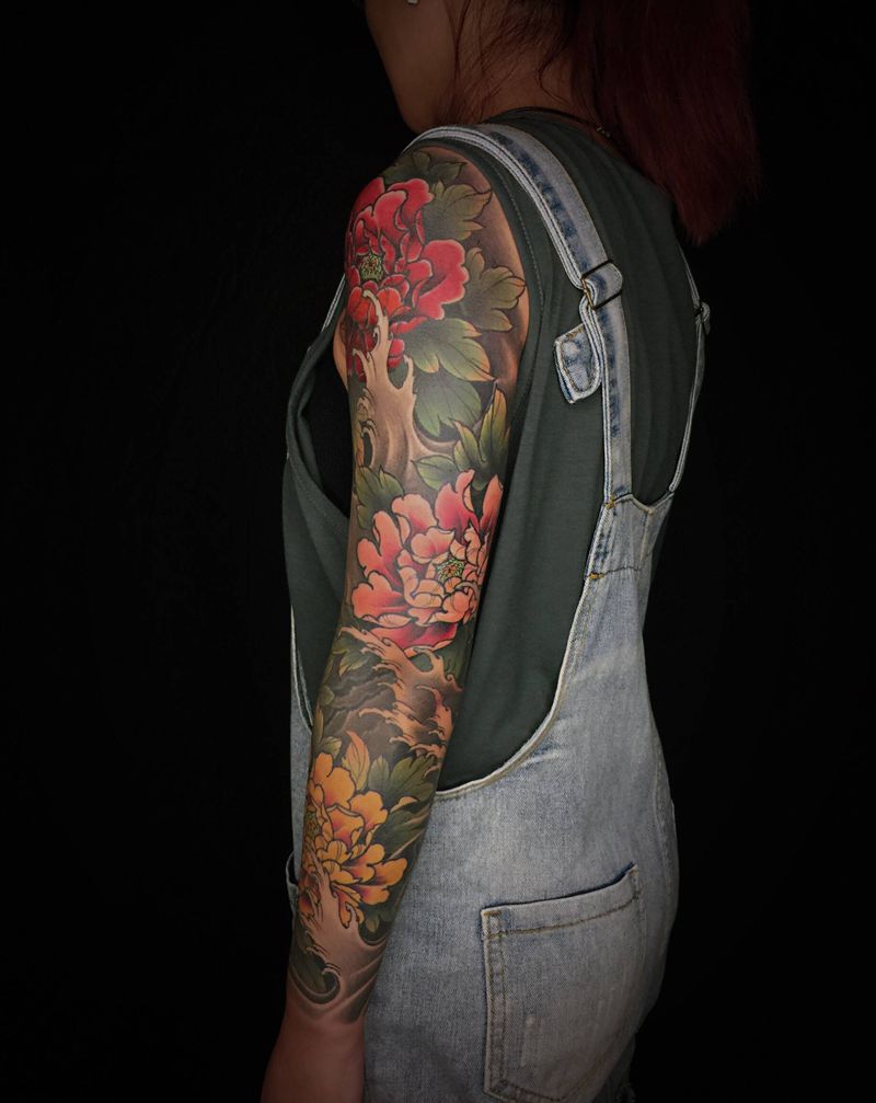 当前位置: 首页 >广西南宁市纹身店-红颜刺青工作室纹身图案>牡丹花臂纹身图片_手臂新传统纹身图案