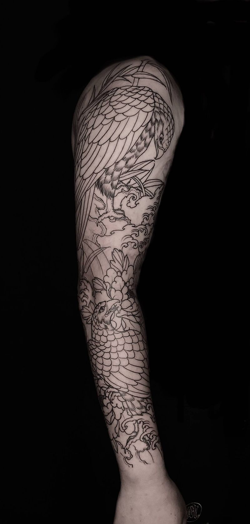 当前位置: 首页 >广西南宁市纹身店-红颜刺青工作室纹身图案>鹰花臂 第一集纹身图片_手臂新传统纹身图案