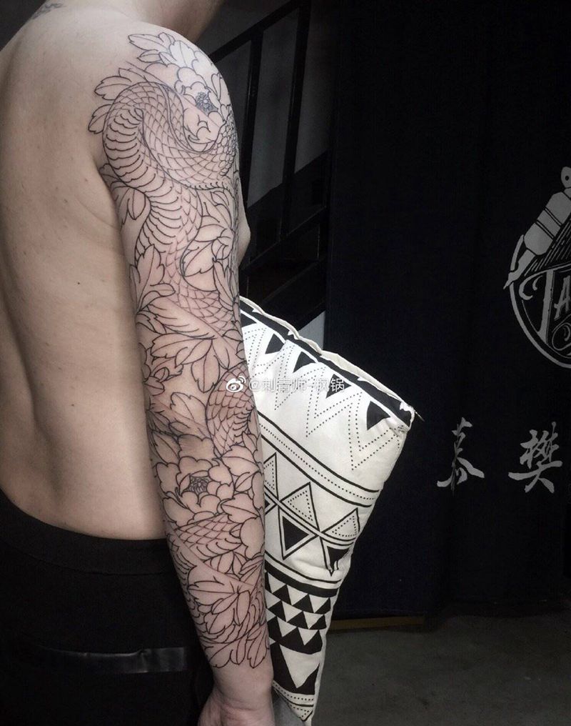 蛇花臂 初步线条纹身图片_手臂手部新传统纹身图案