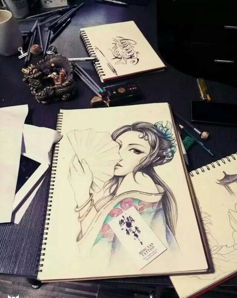 当前位置: 首页 >广西南宁市纹身店-红颜刺青工作室纹身图案>花臂纹身图片_手稿手臂传统肖像原创人物鬼神成品纹身图案