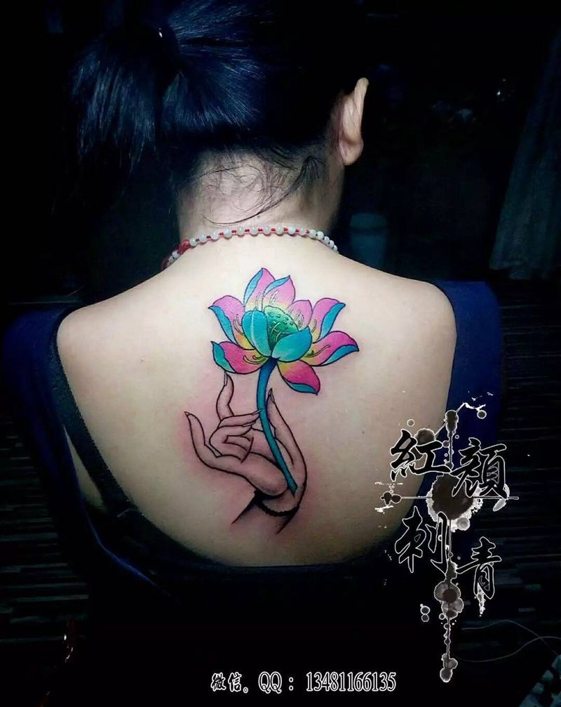 当前位置: 首页 >广西南宁市纹身店-红颜刺青工作室纹身图案>莲花纹身图片_成品手稿背部传统静物植物原创纹身图案