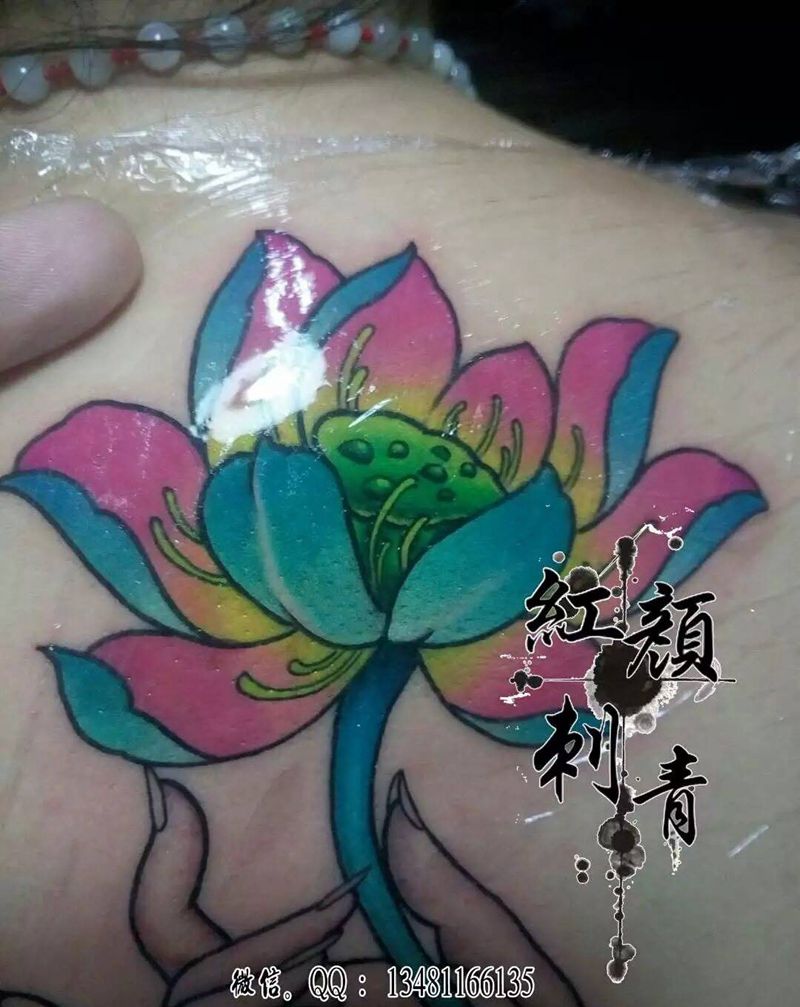 当前位置: 首页 >广西南宁市纹身店-红颜刺青工作室纹身图案>莲花纹身图片_成品手稿背部传统静物植物原创纹身图案
