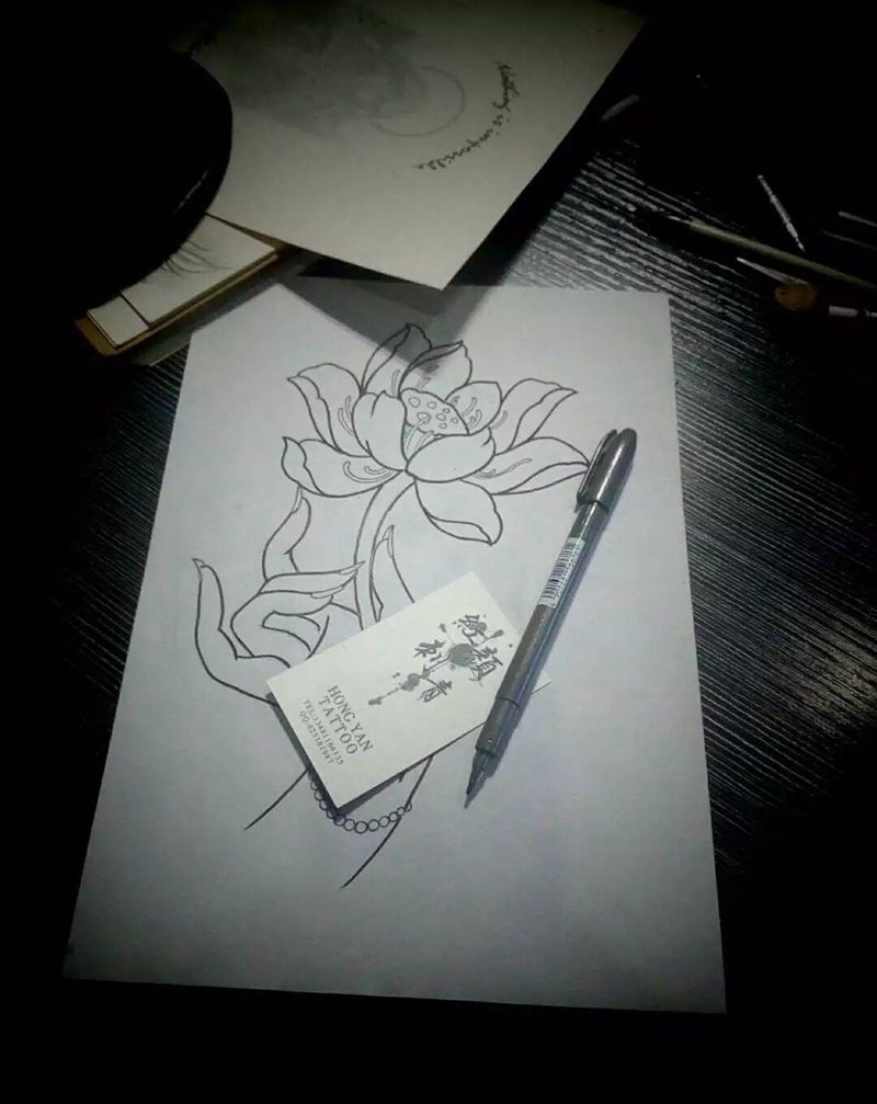 莲花纹身图片_成品手稿背部传统静物植物原创纹身图案