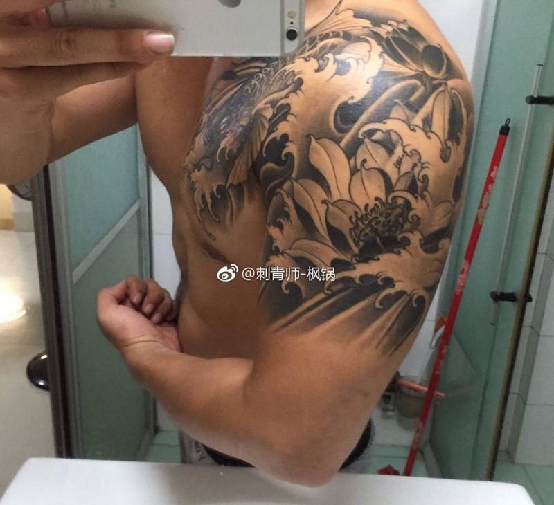 鲤鱼半胛 恢复后纹身图片_胸部手臂新传统纹身图案