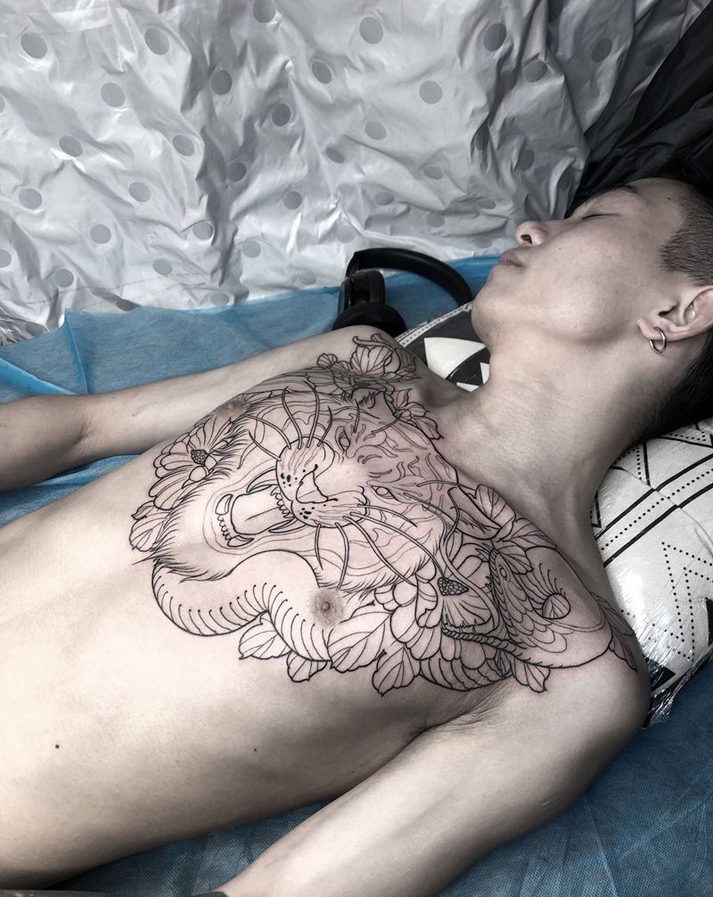 • 女性大花胸纹身_43张霸气漂亮的女性大花胸纹身图案作品