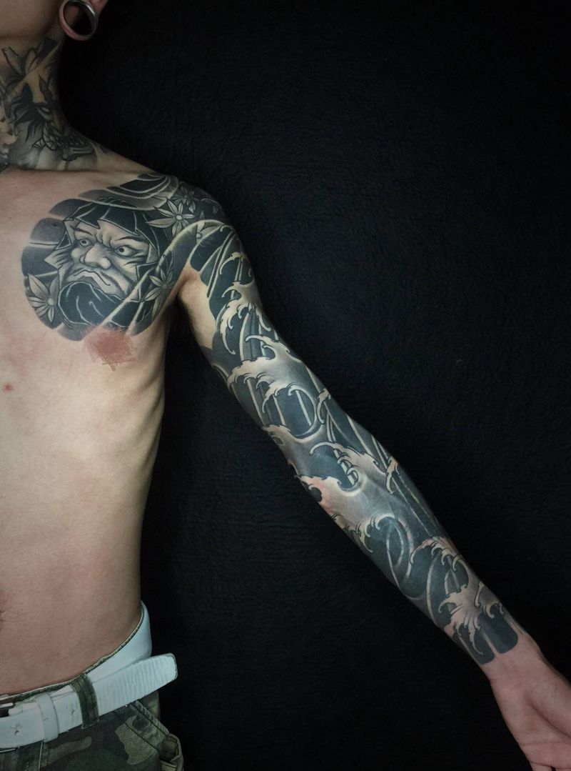 黑灰满背纹身图案