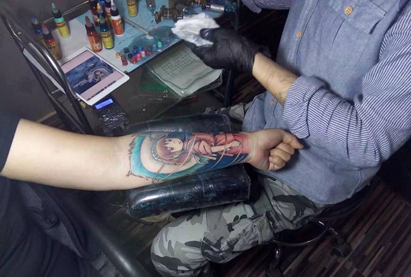 当前位置: 首页 >广西南宁市纹身店-红颜刺青工作室纹身图案>小臂千与千寻。遮盖疤痕纹身图片_手臂成品欧美人物红颜TATTOO纹身图案