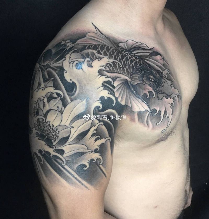 半胛鲤鱼纹身图片