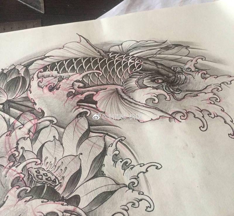 当前位置: 首页 >广西南宁市纹身店-红颜刺青工作室纹身图案>三斤大鲤鱼纹身图片_手稿胸部肩部手臂原创传统动物纹身图案