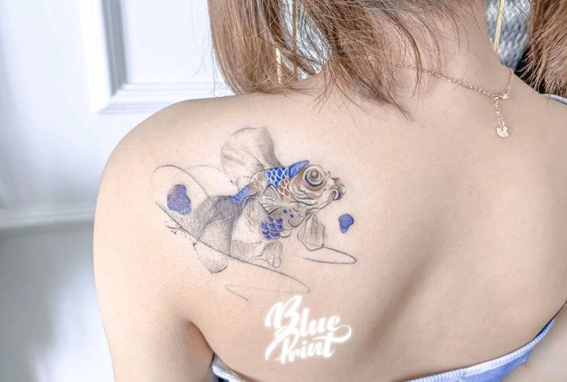 当前位置: 首页 >广西南宁市纹身店-BLUEPRINT蓝塗刺青工作室纹身图案>金鱼纹身图片_背部水墨纹身图案