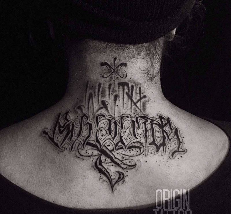 当前位置: 首页 >广西南宁市纹身店-BLUEPRINT蓝塗刺青工作室纹身图案>字体纹身图片_颈部花体字纹身图案