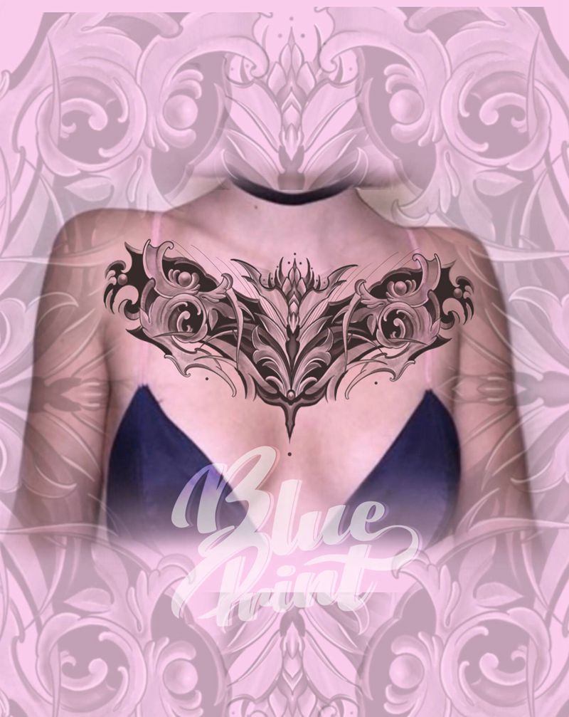 当前位置: 首页 >广西南宁市纹身店-BLUEPRINT蓝塗刺青工作室纹身图案>花胸手稿纹身图片_胸部图腾点刺纹身图案