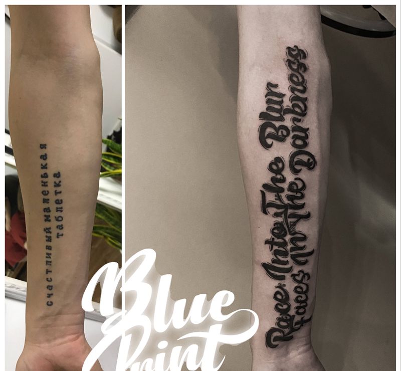当前位置: 首页 >广西南宁市纹身店-BLUEPRINT蓝塗刺青工作室纹身图案>遮盖纹身图片_手臂花体字纹身图案