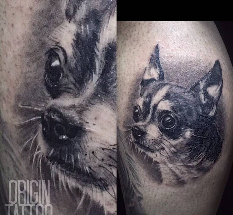 当前位置: 首页 >广西南宁市纹身店-BLUEPRINT蓝塗刺青工作室纹身图案>小狗纹身图片_腿部欧美写实纹身图案