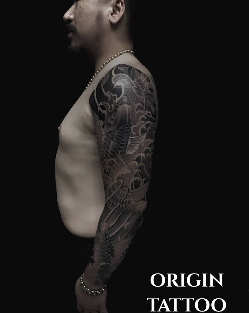 当前位置: 首页 >广西南宁市纹身店-BLUEPRINT蓝塗刺青工作室纹身图案>鲤鱼花臂纹身图片_手臂老传统纹身图案