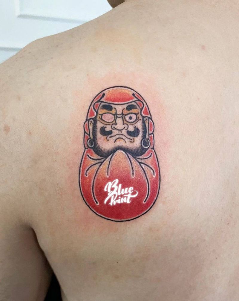 当前位置: 首页 >广西南宁市纹身店-BLUEPRINT蓝塗刺青工作室纹身图案>小达摩纹身图片_肩部老传统纹身图案