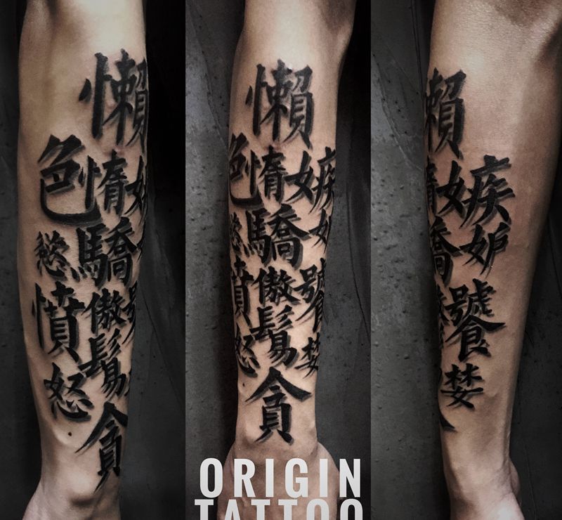 七宗罪纹身图片_手臂图腾花体字纹身图案