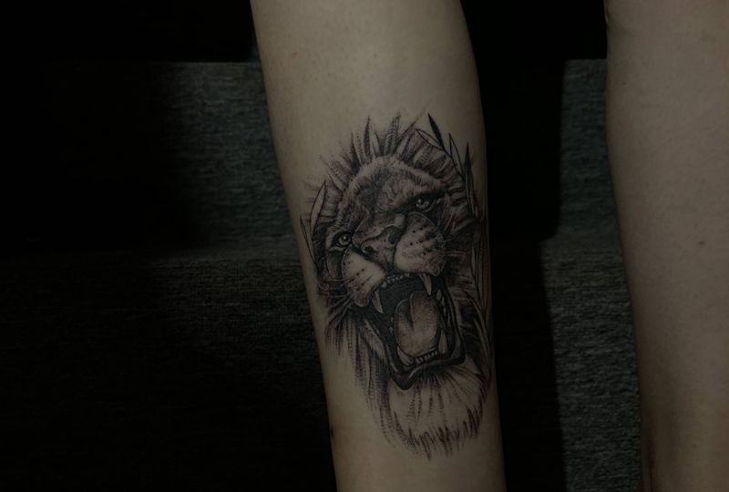 当前位置: 首页 >广西南宁市纹身店-墨徒纹身工作室纹身图案>狮子纹身图片_脚部欧美写实狮子纹身图案