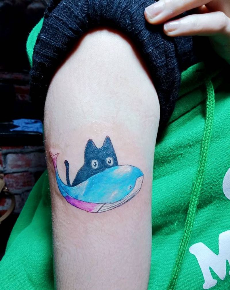 当前位置: 首页 >广西南宁市纹身店-墨徒纹身工作室纹身图案>鲸鱼与猫纹身图片_脚部手臂水彩鲸鱼与猫纹身图案