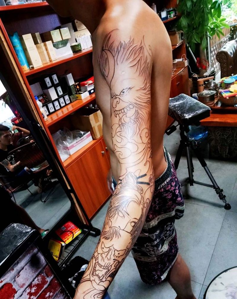 当前位置: 首页 >广西南宁市纹身店-墨徒纹身工作室纹身图案>花臂纹身图片_手臂老传统新传统悟空艺伎纹身图案