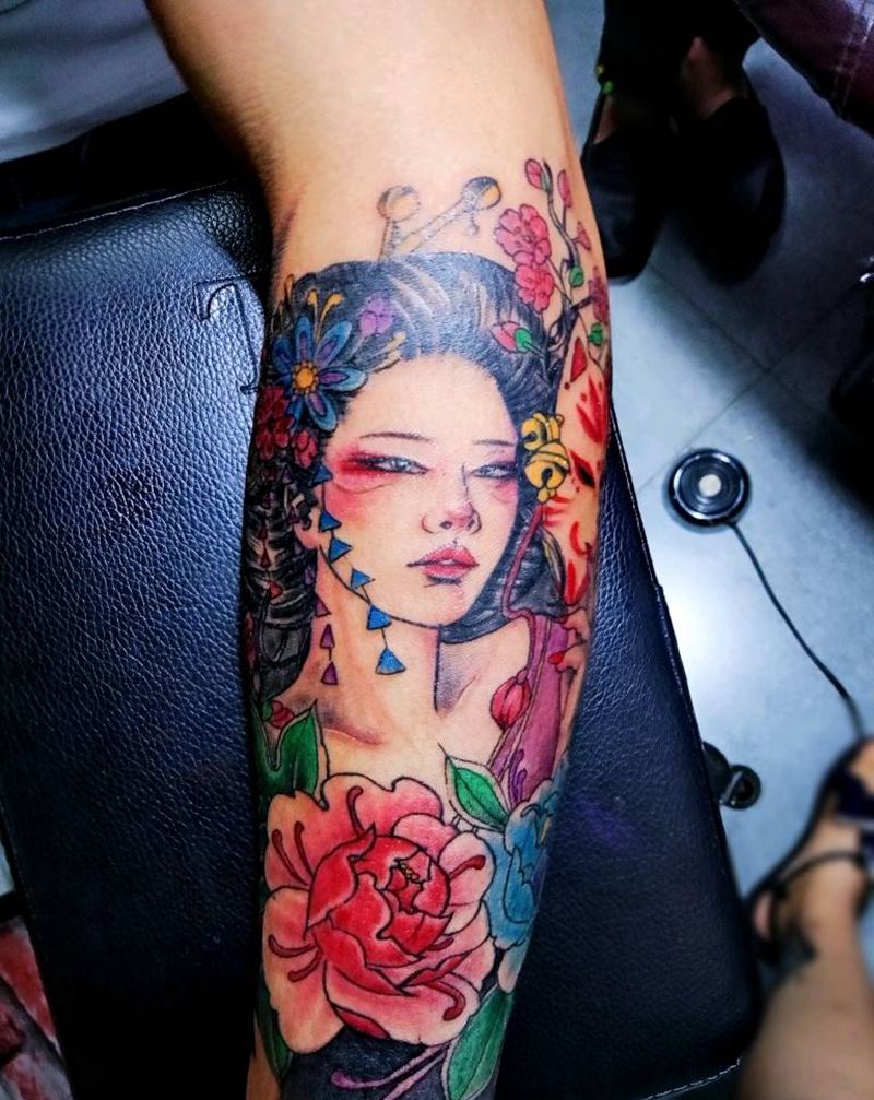 当前位置: 首页 >广西南宁市纹身店-墨徒纹身工作室纹身图案>艺伎纹身图片_手臂腿部老传统新传统艺伎传统纹身图案