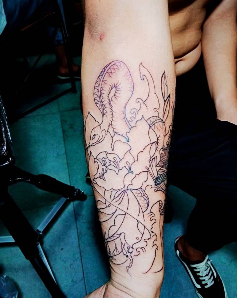 当前位置: 首页 >广西南宁市纹身店-墨徒纹身工作室纹身图案>艺伎纹身图片_手臂腿部老传统新传统艺伎花蛇纹身图案