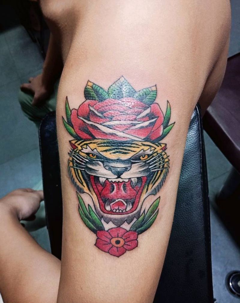 老虎纹身图片_手臂Old SchoolNew School老虎花纹身图案