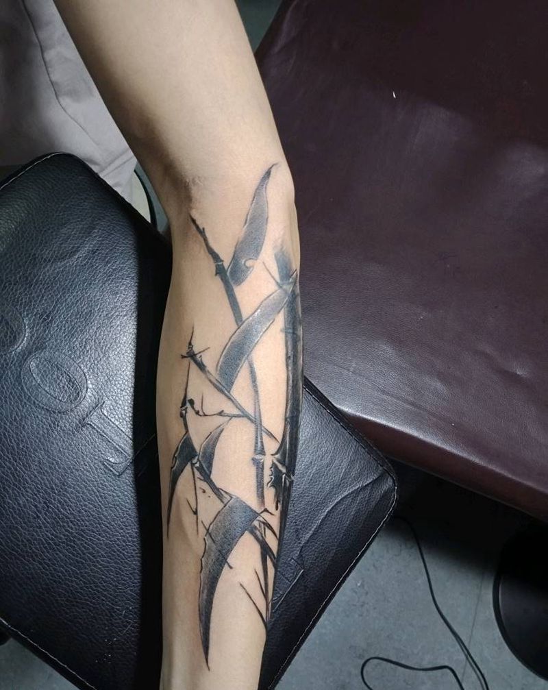 旧纹身遮盖纹身图片_手臂腿部水墨水彩竹子遮盖水墨纹身图案