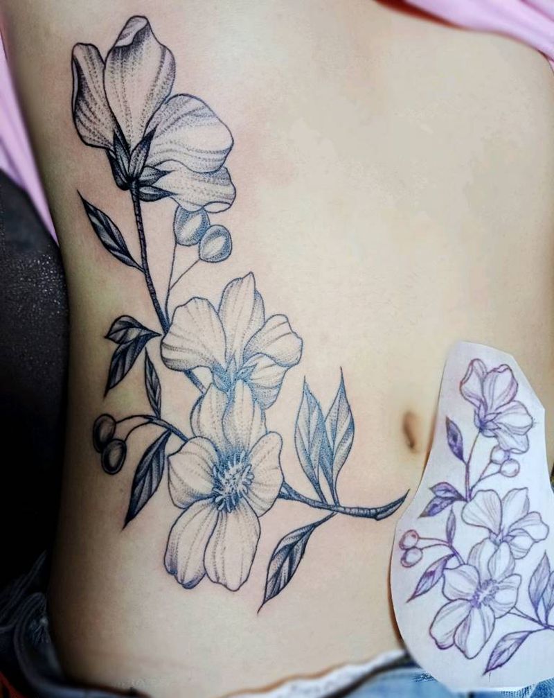 素花纹身图片_腰部手臂欧美写实几何素花纹身图案