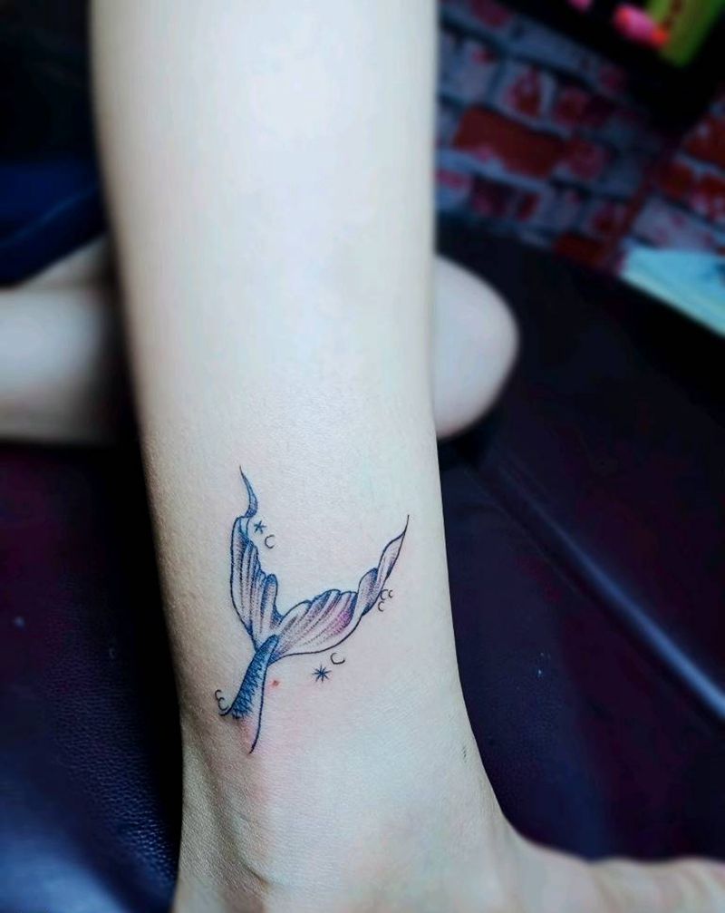 鱼尾纹身图片_脚部手臂水彩欧美写实鱼尾纹身图案