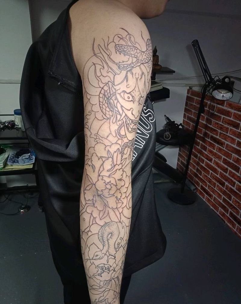当前位置: 首页 >广西南宁市纹身店-墨徒纹身工作室纹身图案>般若花臂纹身图片_手臂新传统老传统般若花臂艺伎纹身图案