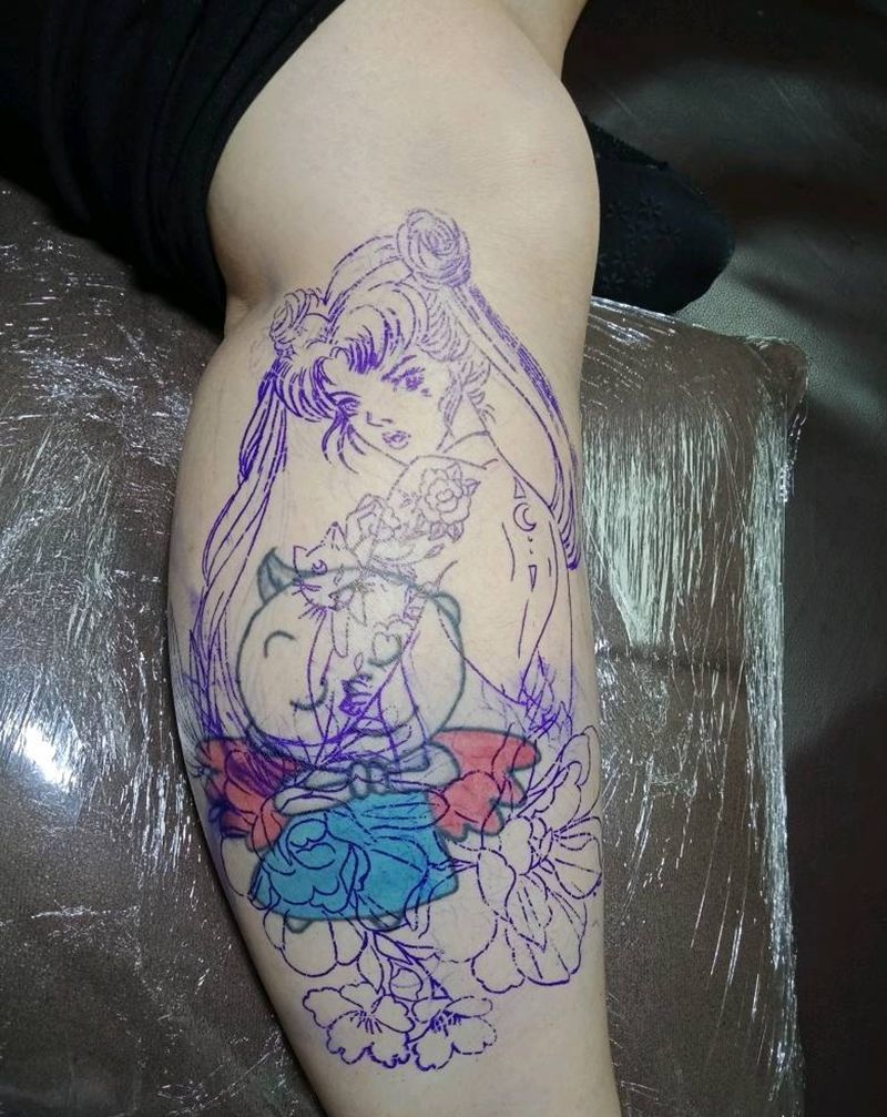 美少女战士纹身图片_腿部手臂水彩美少女战士遮盖彩色纹身图案