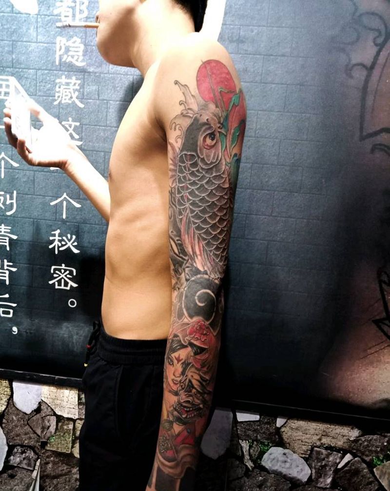 当前位置: 首页 >广西南宁市纹身店-墨徒纹身工作室纹身图案>遮盖花臂纹身图片_手臂腿部老传统新传统遮盖荷花鲤鱼纹身图案