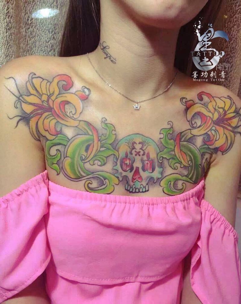 • 女性大花胸纹身_43张霸气漂亮的女性大花胸纹身图案作品