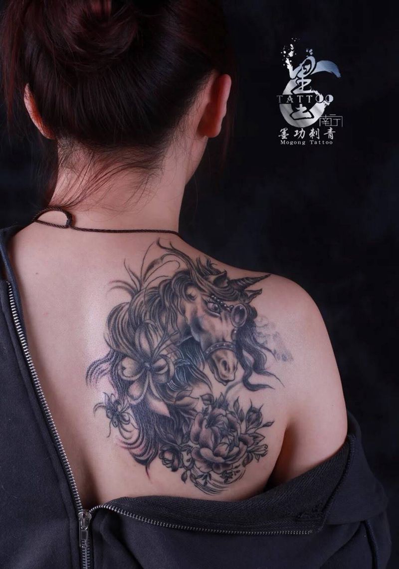 • 黑灰满背纹身图案